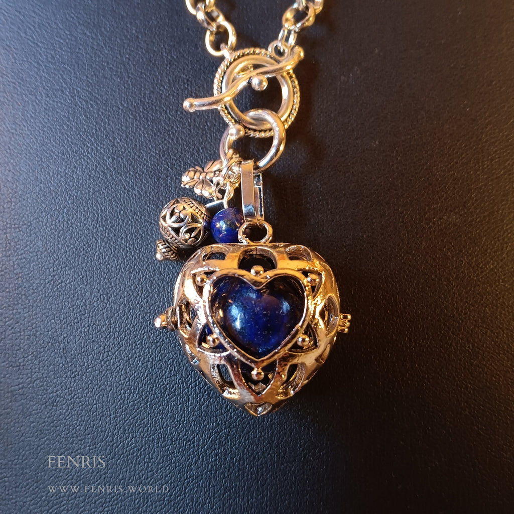 Hinged heart cage contains blue lapis lazuli sphere